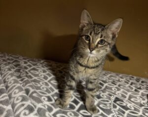 Jameson and his siblings have come a long way! They’re quiet, sweet kittens, who we’d prefer to go to their furever homes in pairs.