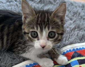 Cara and her siblings have come a long way! They’re quiet, sweet kittens, who we’d prefer to go to their furever homes in pairs.