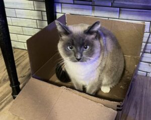 Want a big, chill guy to hang with? Colton is your cat! He gets along well with other cats, has been exposed to his foster’s dog and done well, and is loving and affectionate with people.